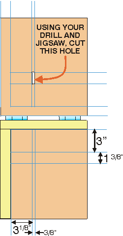 Now you have to build the Hole Punch Jig. You'll need two scrap pieces of plywood about 1' square, a few strips of wood or masonite that are 1/4" x 1" x 12", and a couple of small hinges. Nail or screw the strips as indicated in the photo (they're the white strips). Carefully measure, mark and cut as indicated.