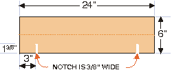 Using any scrap masonite or thin plywood you happen to have handy, make one last jig. This one will help you place the notches in the desk that match up with the notches in the base. Place this over the 6" x 24" pieces of the desk assembly and trace and cut the notches in all 17 pieces. Set aside until assembly.