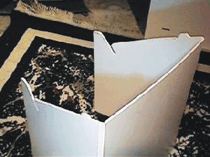 Retrieve the larger of the two desk assembly pieces and fold it using the Bending Brake.